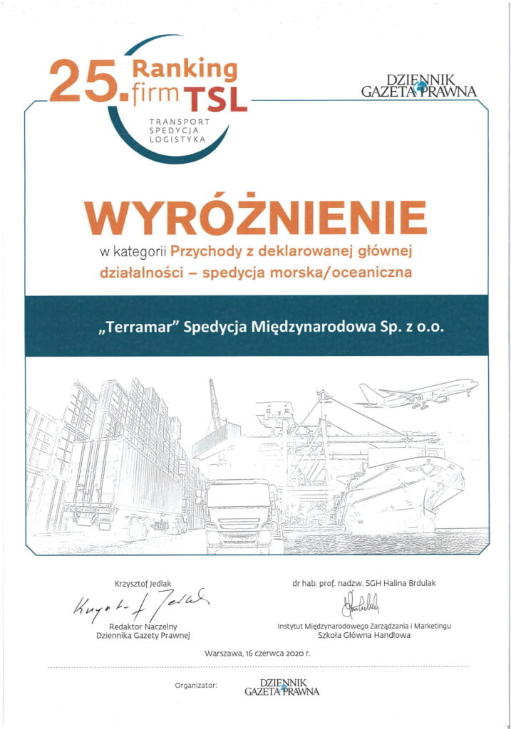 We have been awarded an honorable mention in 26 Ranking of logistic and forwarding companies by Polish law magazine “Gazeta...