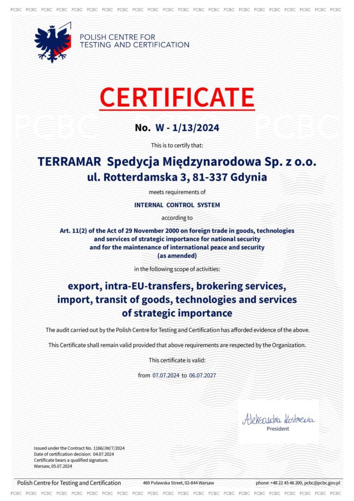 We are WSK (Internal Control System) Certificate holder and therefore we are authorized to organize transport of military cargo and...